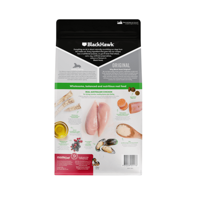 The Black Hawk Original Mature Chicken & Rice contains the following:
