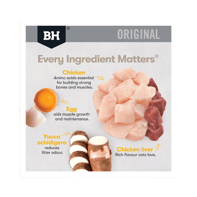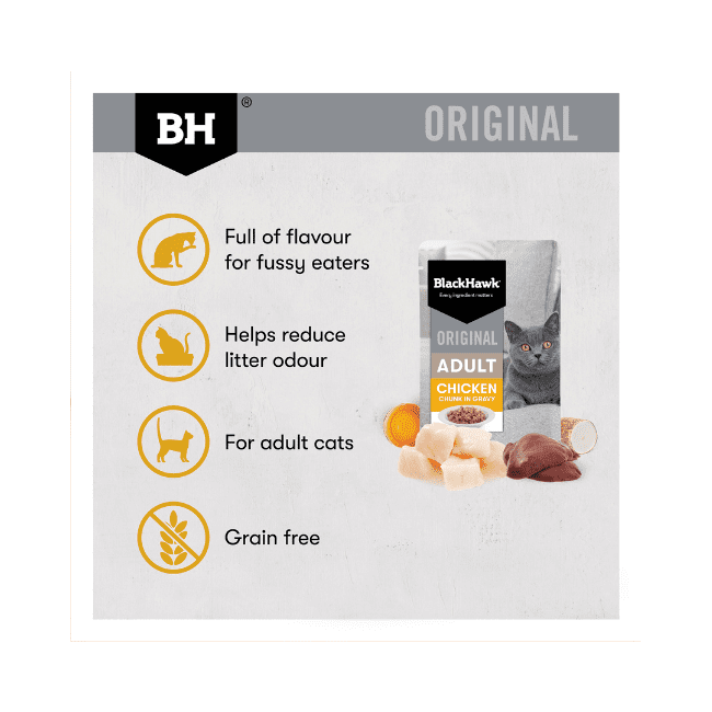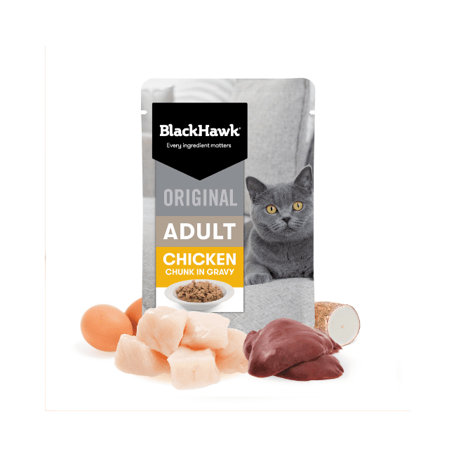 Specifically developed for cats, with proteins and textures they love, and the complete and balanced nutrition they need. Every ingredient that goes into our recipes has a nutritional purpose, so you’ll never find wheat, corn, soy, artificial preservatives, colours or flavours in Black Hawk.