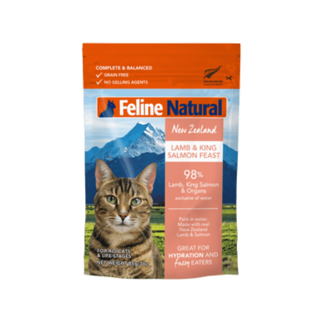Crafted with wholefood New Zealand ingredients and selected vitamins and minerals, our new Pouch diets are a nutritious, highly palatable pâté, blended with fresh New Zealand water for added hydration and provide the best blends of nature in nutrition for your cat. Made in New Zealand with grass-fed, free-range Lamb and sustainably caught King Salmon, this Lamb & King Salmon diet provides the rich proteins and Omega 3 fatty acids to assist a cat’s natural anti-inflammatory responses. Also supports healthy skin, coat, and joints. Our Pouches are not only convenient, but also in a mess-free and easy-to-use single serve.