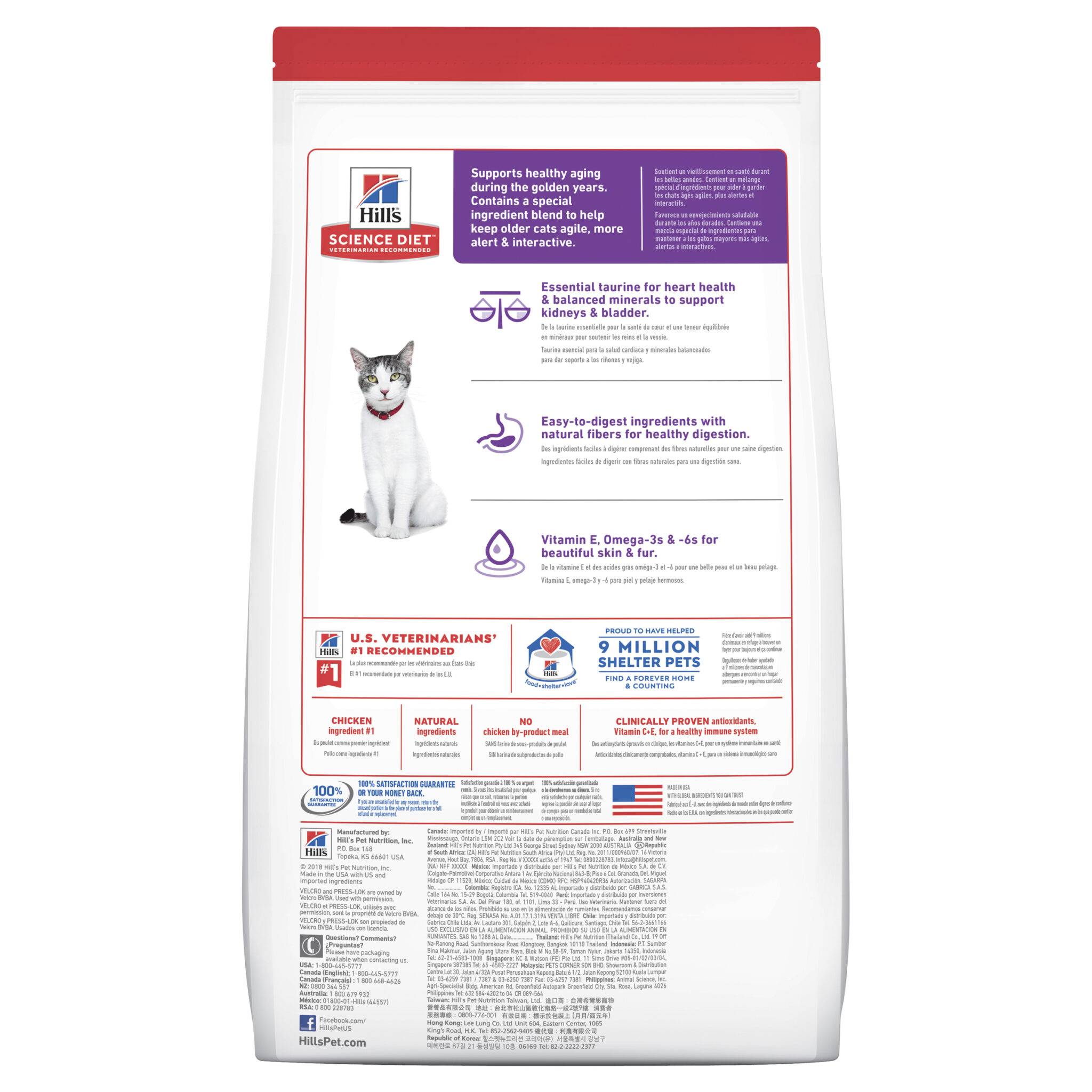 †An eight fluid oz. measuring cup of Hill’s® Science Diet® Adult 11+ Chicken Recipe cat food contains 4.4 oz. by weight.