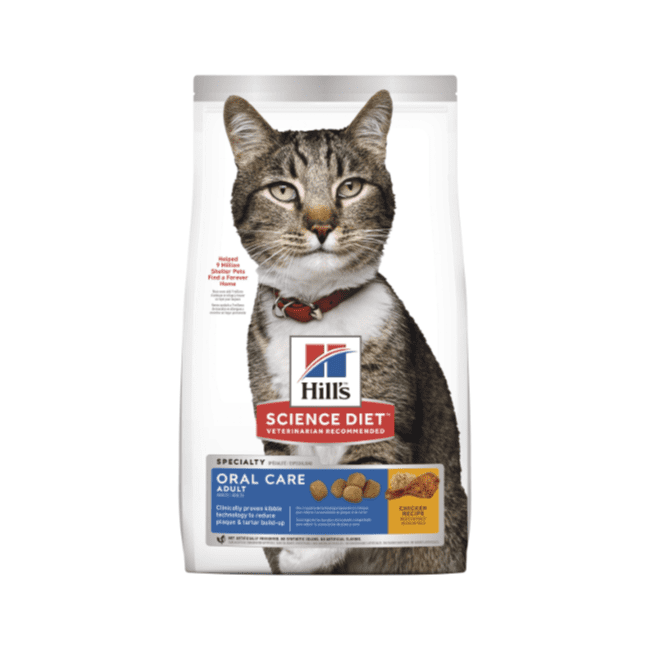 Hill’s Science Diet Oral Care dry cat food provides precisely balanced nutrition to improve dental health.