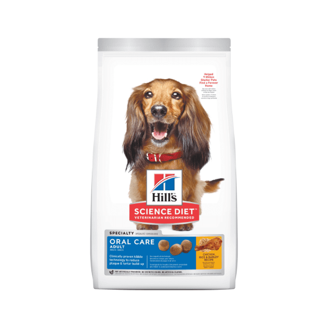 †An eight fluid oz. measuring cup of Hill’s® Science Diet® Adult Oral Care dog food contains 2.8 oz. by weight.