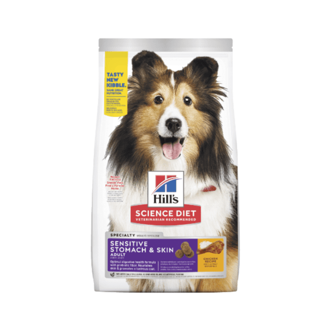 †An eight fluid oz. measuring cup of Hill’s Science Diet Adult Sensitive Stomach & Skin dog food contains 3.6 oz. by weight.