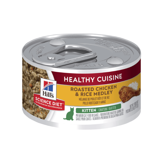 Animal feeding tests using AAFCO procedures substantiate that Hill’s® Science Diet® Kitten Healthy Cuisine Roasted Chicken & Rice Medley provides complete and balanced nutrition for growing kittens and gestating or lactating adult female cats.