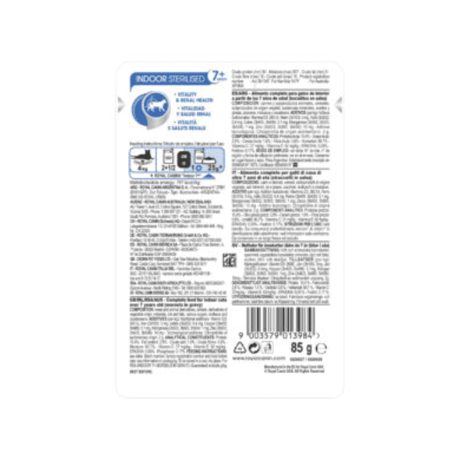 To help cats face the first signs of ageing, this formula includes synergistic antioxidants (including Vitamin C & E), EPA and DHA, along with adapted phosphorus level to support kidney health.