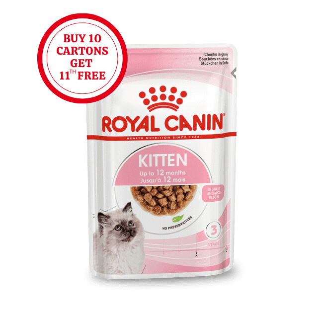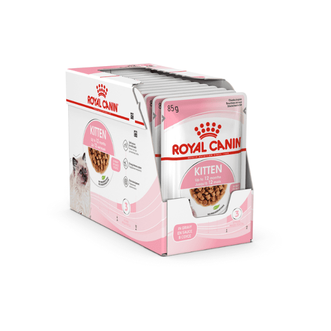 ROYAL CANIN® Kitten in Gravy is specially formulated to support the nutritional needs of kittens in the “consolidation phase” of their growth. This formula is suitable for 4 to 12-month-old kittens as they undergo a period of significant physical and behavioural changes.